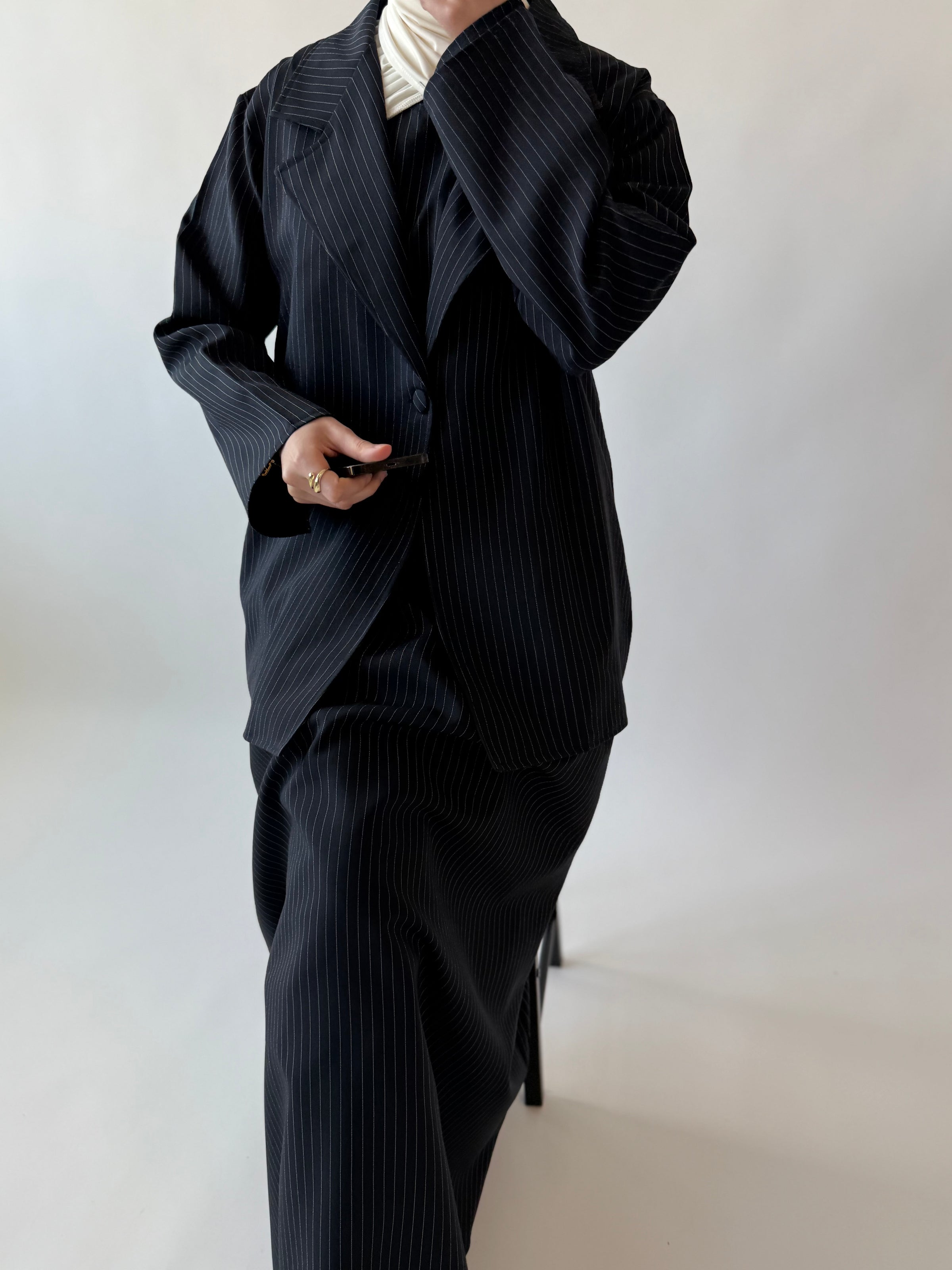 This classic oversized piece is the perfect modest suit blazer, which features a stylish
